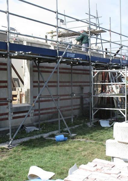 Once the Oamaru stone perimeter wall had been taken down to the course of the lintels, the scaffolding could be removed.