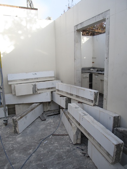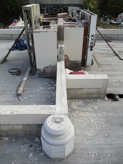 Walls are taken down block by block; interior and exterior.