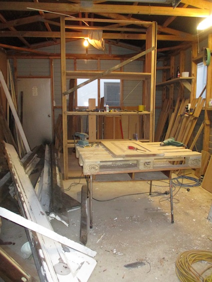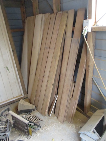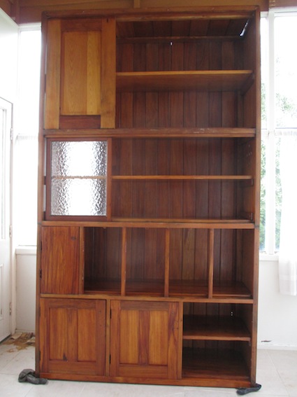 I temporarily removed the T&G back side and some shelves to give me access to all corners and to be able to paint-strip and sand the T&G properly.