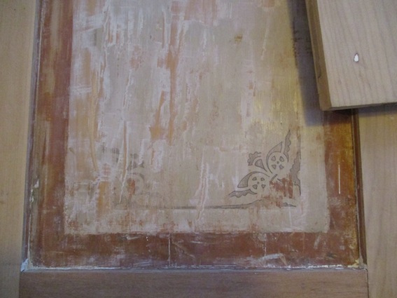 Paint stripping the joinery revealed redundant nail holes, closing mechanisms and hinge positions indicating there had been a life before being used as this cupboard.