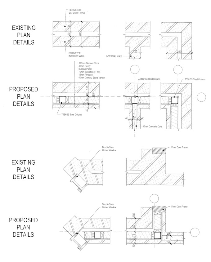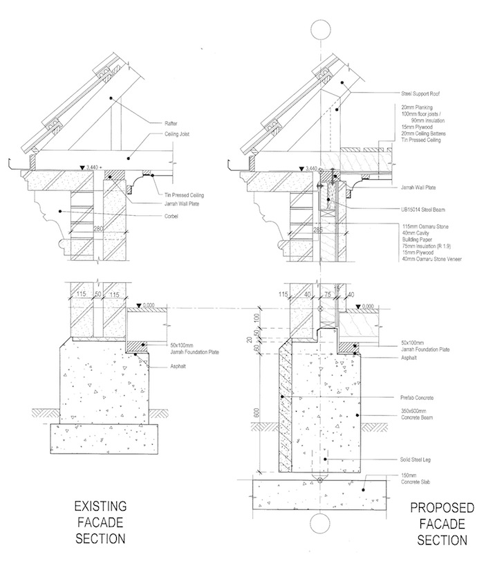 The exterior (architectural) wall will be rebuild as per the existing layout of the Oamaru stone blocks.
